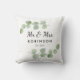Elegante e delicado design de travesseiro personalizado com folhagem de eucalipto para casamento ou aniversário de casamento Senhor e Senhora. Personalize com nome e data. Fácil de personalizar. Compre o seu hoje!