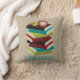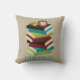 Dê a seu bibliotecário favorito este travesseiro decorativo bonito com sua pilha alta de livros e de um leitor ávido minúsculo. grande ideia do presente para os feriados.
