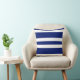 Travesseiro decorativo do desenhista da listra dos azuis marinhos & do branco feito no presente de América de zazzle.com/americanmademojo*.