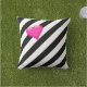 Travesseiro preto e branco elegante e simples com um pequeno coração rosa.