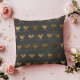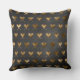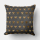 Belos travesseiros pretos com padrão de coração de ouro, disponíveis em vários designs diferentes.