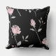 Almofada Preto com rosas e rosebutas cor-de-rosa
