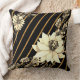 Almofada Preto-listrado Dourado com rosa branca