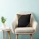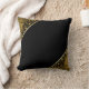 Travesseiro decorativo diagonal sofisticado em preto e dourado.