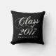 Chic, travesseiro moderno de graduação negra. O travesseiro decorativo apresenta um fundo preto, Classe 2017 em uma fonte de script clássica e espaço reservado para texto. A classe personalizada do travesseiro 2017 é perfeita para dar como presente de graduação!