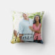 Travesseiro de fotos da família personalizada com uma camada de texto elegante. O modelo de foto está configurado para você adicionar suas próprias fotos - uma da frente e outra no verso. A frente também tem a sobreposição de texto que você pode personalizar com seu nome de família. A família é escrita à mão em caracteres elegantes, enquanto o nome da família é impresso em letras negrito. Este design está disponível com uma sobreposição de texto branco ou uma sobreposição de texto preto para que você possa escolher aquele que melhor funciona com a sua foto.