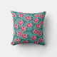 Almofada Pretty Pink Roses and Polka Dot Pattern on Teal