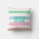 Aqui está um travesseiro decorativo do tema da praia maravilhosamente decorado em um padrão de listras de primavera ou decorador de verão em tons de rosa, azul, verde e pêssego. Projetado para ser uma peça caseira que adiciona um toque de cor ao seu esquema de decoração.
