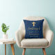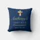 Apanhe o momento para sempre com este azul escuro Primeiro Travesseiro de Lembmento Sagrado. O design apresenta um fundo azul escuro com uma cruz dourada e um texto personalizável.