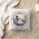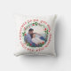 Primeiro Natal como o Sr. e Sra. Red e Green Wreath travesseiro decorativo. Esta design festiva mostra uma foto dos recém-casados em uma coroa de Natal e o texto: "NOSSO PRIMEIRO NATAL COMO SR. E SRA." em vermelho.