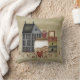 Este travesseiro divertido é perfeito para o seu país ou casa primitiva. Há uma casa colonial saltbox com uma estrela no auge, 3 caixas de estilo Shaker com estrelas, uma fotografia de um coração de estanho, um homem de gengibre, coração, rolos de canela em um vidro e cipós vermelhos. O plano de fundo é feito em um olhar de tecido de burlap. A parte traseira do travesseiro também é a aparência do tecido de burlap.
