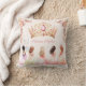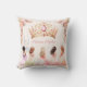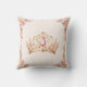 Travesseiro decorativo princesa adornada com uma coroa rosa e ouro, flores delicadas e adoráveis princesas em vestidos pastéis. As rosas e a coroa no verso. Personalize facilmente o texto. - Kate Eden Art