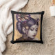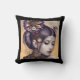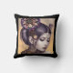 Travesseiro decorativo em retrato de uma princesa de cabelo preto, temerária-steampunk com uma flor metálica de cor cobre em seu cabelo e ornamentos de ornamentado metálico