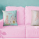 Uma princesa temia design pessoal apresentando uma princesa com um Unicórnio e um Castelo da Princesa. O plano de fundo é azul na frente e rosa no verso para um travesseiro reversível. Altere facilmente as informações para o seu próprio design personalizado.