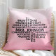 Personalizou este belo travesseiro em nuvem de professora, a cor-de-rosa, com o nome do professor para mostrar o quanto você se importa. Para personalizar, basta clicar em 'personalizar este design e inserir o nome do professor. Se quiser trocar de palavras, você pode editar usando a ferramenta design. Basta substituir a palavra por uma palavra do mesmo comprimento. Perfeito para uma professora que ama seu café! Perguntas? Sinta-se livre para me enviar uma mensagem em susan@susannewberrydesigns.com.