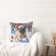 Almofada Pug correndo na neve com chapéu de Natal
