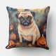 Almofada Pug De Halloween Com Pumpkins Assustado