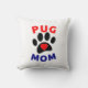 Impressão de pata de cão preto e esboços, desenhos de coração vermelho e texto. Travesseiros decorativos personalizados. Tudo o que é visto é impresso. nenhuma costura será usada no fazer. Pug mamãe design. Ideia para mulheres que amam cachorros.
