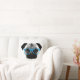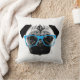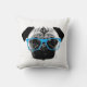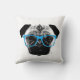 Pug Nerdy em travesseiros azuis do hipster dos vidros.