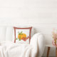 Morangos de abóbora e folhas de terracotta caem no travesseiro decorativo de Ação de Graças. Apresenta uma abóbora amarela e laranja com folhas e bagas vermelhas. Há uma borda em cor de terracota ao seu redor.