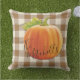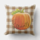 Estilo fazendeiro, café, café, castanho e xadrez de gingham esbranquiçada, em forma de café, com uma abóbora laranja brilhante no topo. Com a opção de personalizar ou personalizar com um nome de família ou texto (limitado) de sua escolha. Uma almofada quente divertida ao ar livre para enfeitar o seu pátio ou a varanda da cabine e para se acalmar durante o outono, o feriado de Ação de Graças e o Halloween.