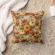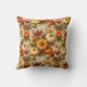 Orange, white, and brown pumpkins with autumn leaves and seeds make a splendid throw pillow for Thanksgiving and your fall decor.