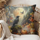 Junte-se a este travesseiro mágico de queda, com um corvo encravado sobre abóboras brilhantes e folhas de outono sob uma lua de cheio. Perfeito para decoração de Halloween, interiores góticos, ou nozelos de leitura.
