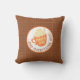 Diversão Fall travesseiro decorativo apresenta crachá de tipografia de piche de abóbora com um plano de fundo castanho.