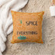 Travesseiro de outono laranja com uma abóbora laranja e folha de chá e texto que diz, "Pedra de abóbora e tudo bem."