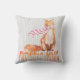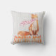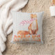 Travesseiro decorativo de coloração aquosa Colorida Queda, com raposa com abóbora/cachecol listrado e "estação de espeto de abóbora" sobre fundo de faixa de cinza