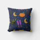 Um travesseiro bonito e balbucioso do Dia das Bruxas, com gatos, luas, abóboras, estrelas, pernas de bruxa e botas, e um caldeirão com bolhas verdes borbulhantes, é claro! Padrão criado por Gráficos de Casa da Lavanda. Nada é gerado pela IA.