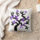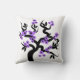 Pássaros roxos e negros sakura cerejeira com travesseiro decorativo floral. Ela apresenta uma sakura de flor roxa com corações pretos no centro e um par de pássaros apaixonados.
