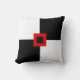 Quadrado vermelho moderno sobre Travesseiro decorativo de fundo preto e branco.