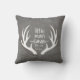 Seu pequeno garoto vai adorar este travesseiro divertido! Este design apresenta um fundo de textura cinza, chifres e tipografia personalizada. Adicione a data de nascimento do seu filho para completar a aparência.