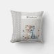 Travesseiro decorativo/almofada de lado duplo para o quarto/berçário/sala de reprodução de uma criança. Esta cinza e travesseiro branca tem bolinhas, estrelas e um leopardo fofo, que você pode personalizar com um nome.