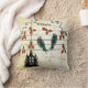 Aves Vintage sentadas em fios com gaiolas vitorianas. Travesseiro de Ênfase Laranja e Teal