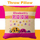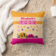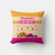 Travesseiro decorativo do quarto de miúdo duplo. Adicionar um nome. Esquema de cor laranja, rosa, roxo e amarelo.