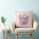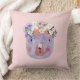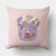 Almofada de decoração para quarto de menina com animal selvagem fofo rosa e flores. Linda ursa com flores coloridas na cabeça é linda e é um ótimo presente de aniversário. Almofada decorativa rosa para quarto de menina.