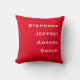 Este simples e minimalista travesseiro decorativo quadrado, com espaço para quatro nomes, é um presente maravilhoso para uma nova festa de casa ou de aquecimento doméstico - ou para si próprio, é claro! presente de excelente para novos pais ou avós. É vermelho e branco de natal brilhante, mas fácil de mudar de cores. O dorso é vermelho sólido. Todos os Direitos Reservados © 2024 Alan & Marcia Socolik