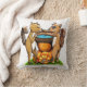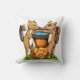Travesseiro decorativo Squirrels Loving Fall / Outono 2 esquilos se conectam sobre um banho de pássaros, na forma de uma capa de bolota empilhada sobre uma abóbora, aberta no topo, cheia de água, com mais abóboras apoiando-a em seus lados. Do outro lado está um esquilo lançando folhas no ar, feliz como qualquer coisa. Trabalho de arte por Kristie Hubler. Impressora a jato de tinta, com preenchimento digital, tinta acrílica e detalhes de marcadores.