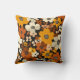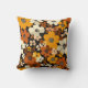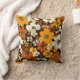 Um padrão retrógrado vivo com creme de abstrato, laranja e flores marrons em um fundo castanho profundo.