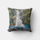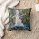 Uma cena em cascata de agulha de lã derrubando arte de uma criação original. A parte de trás do travesseiro é uma cor azul oceânica.