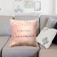 Um travesseiro para uma sala de Quinceañera, com 15 anos de idade. Um fundo rosa de ouro com uma poeira elegante falso brilhante. Personalize e adicione um nome. Quinceañera é escrita em ouro rosa escuro com um grande estilo escrito à mão moderno.