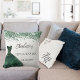 Para uma Quinceañera, 15 festa de aniversário. Um fundo branco com um vestido verde esmeralda e um confete verde. O nome é escrito com um moderno estilo escrito à mão. Personalize e adicione seu nome e uma data.