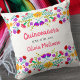Quinceañera travesseiro com flores de fiesta mexicanas - ou sentir-se à vontade para personalizar como um belo presente de guardas para celebrar qualquer ocasião. Este travesseiro colorido e vibrante da Quinceanera tem flores de arte folclórica mexicanas em azul e verde roxo cor-de-rosa. O modelo está pronto para você personalizar, com sua ocasião, nome e data. Por favor, procure na minha loja os convites e acessórios correspondentes.