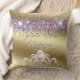Quinceañera travesseiro Tradicional para a apresentação da tiara ou coroa para sua Mis Quince Anos, elegante brilho roxo e design de ouro com seu nome e bela tiara em ouro e ametista na frente, um texto curto nas costas