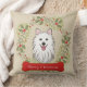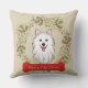 Travesseiro decorativo do Feliz Natal que caracteriza sua raça favorita, uma grinalda do azevinho e o osso vermelho em um fundo khaki. Ornamento de harmonização disponíveis.