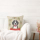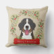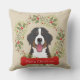 Travesseiro decorativo do Feliz Natal que caracteriza sua raça favorita, uma grinalda do azevinho e o osso vermelho em um fundo khaki. Ornamento de harmonização disponíveis.