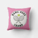Rackets de tênis e campeão de bola e travesseiro decorativo rosa com nome de jogador. ele mostra raquetes e uma bola verde. Há um texto personalizado e uma borda cor-de-rosa ao seu redor e você pode adicionar o nome do jogador.