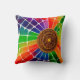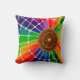 Este travesseiro tem uma teia arco-íris nele.